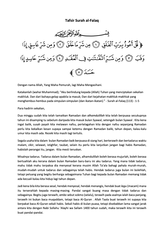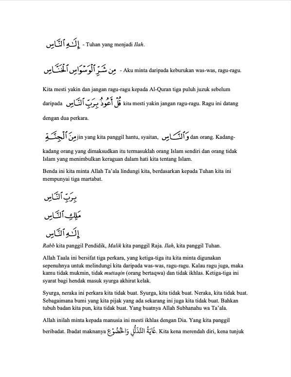 Selepas Surah al-Fatihah, Surah al-Nas, Surah al-Falaq dan Surah al-Ikhlas ialah trio surah yang dekat di hati orang Islam di Alam Melayu khususnya. Kita mengenal tiga surah ini sejak sedari kecil lagi dengan nama Tiga Qul. Dibaca hampir setiap hari tanpa memahami maksud setiap kalimah dan ayatnya ketika itu.